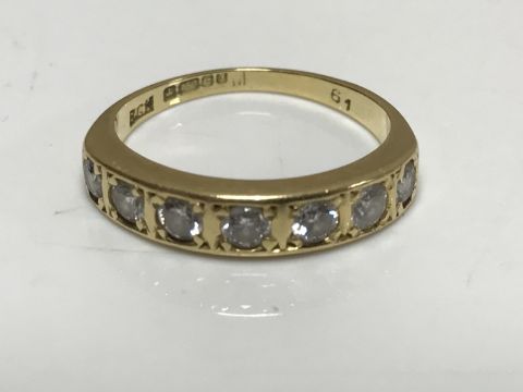 An 18ct gold seven stone brilliant cut diamond ring, approximately 0.61ct, clarity Vs2, colour G, with insurance document and diamond grading report card.