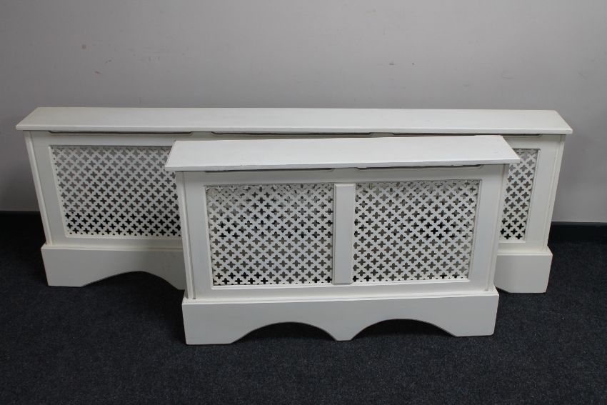 Smaller - 101.5cm wide by 18.5cm deep by 64cm high. Larger - 182cm wide by 18.5cm deep by 64cm high.
