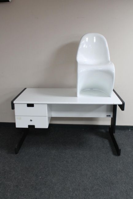 A late 20th century Neolt Italian single pedestal drawing table together with a white plastic chair