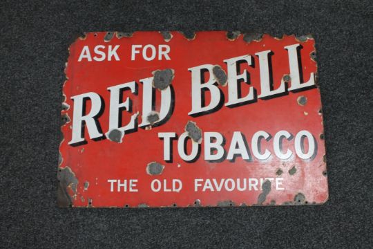 An early 20th century Ask for Red Bell tobacco the old favourite enamelled sign
