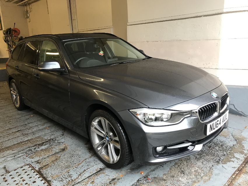 A BMW 320i Sport estate motorcar, registration NU64 AUL, first registered 11.09.2014, 1997CC, petrol, start/stop, manual, colour mineral metallic grey, one former keeper, with V5C document, two keys, MOT conducted on 4.10.19 expires 3.10.20 , mileage 26,211. With service history booklet. HPI check performed 4/10/2019. SOLD WITHOUT RESERVE.