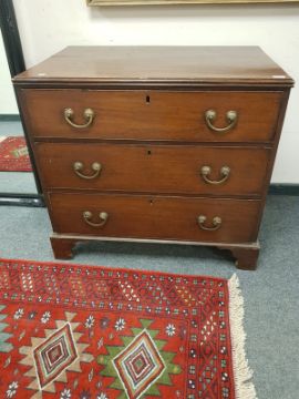 A George III mahogany three drawer chest on bracket feet, width 95 cm.