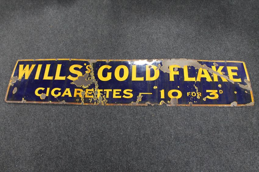 An early 20th century Wills Golden Flake Cigarette enamelled sign