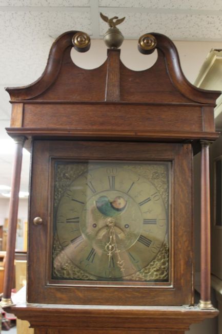 An antique painted longcase clock with brass and silvered dial - Joseph Bierigerai with one weight
