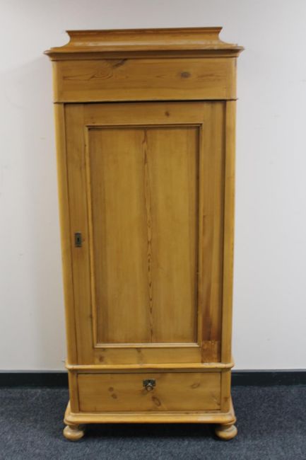 An early 20th century pine pillar cabinet fitted a drawer