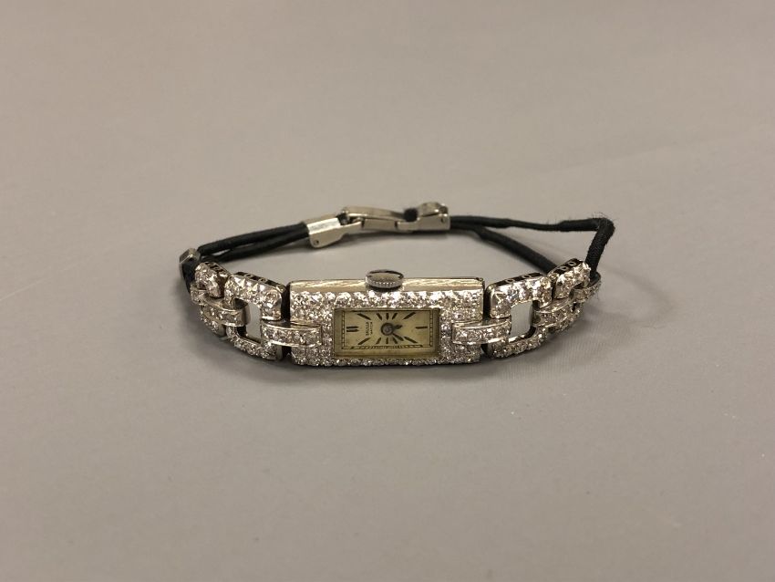 An Art Deco platinum diamond set lady's cocktail watch signed Balilla