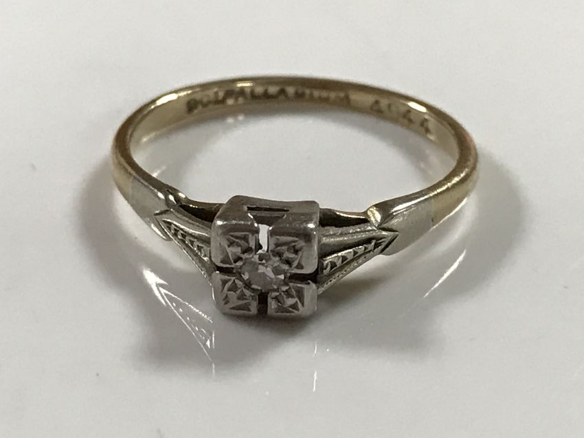 An early twentieth century diamond set 9ct and palladium mounted ring, 1.6g, size K.
