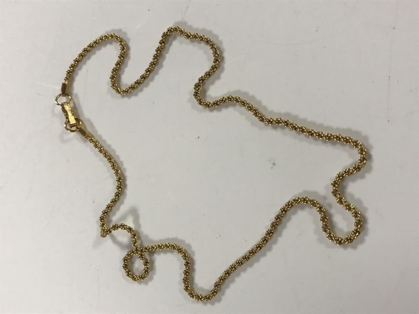 A yellow metal rope twist chain, marked 'Swarovski', 8.6g.