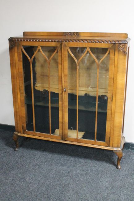 A 1930's walnut display cabinet