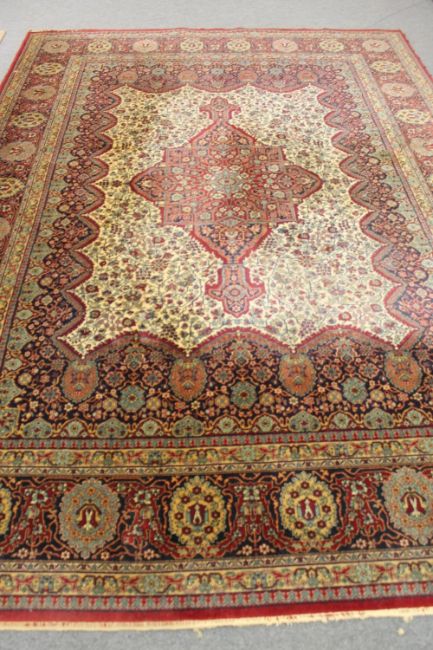 A machine made Turkish carpet on red ground, 253cm by 251cm