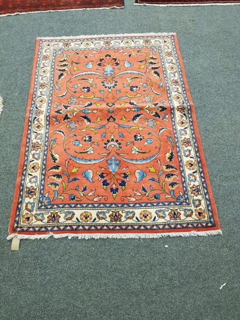 An Eastern carpet on salmon ground, 105 cm x 147 cm