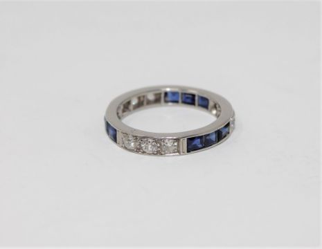 A fine antique platinum sapphire and diamond set full eternity ring, size N1/2