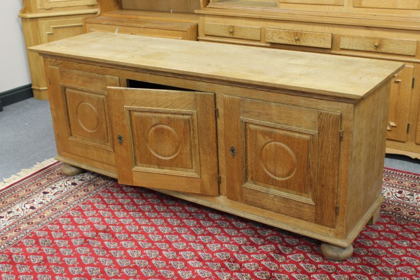 A blond oak triple door sideboard