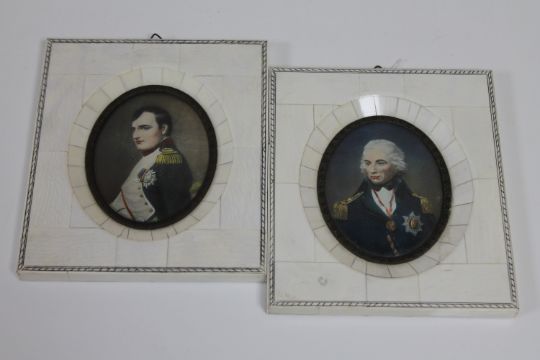 A pair of miniatures of Nelson and Napoleon in bone frames
