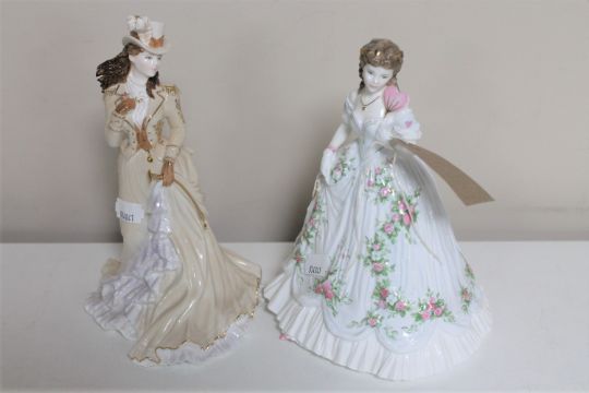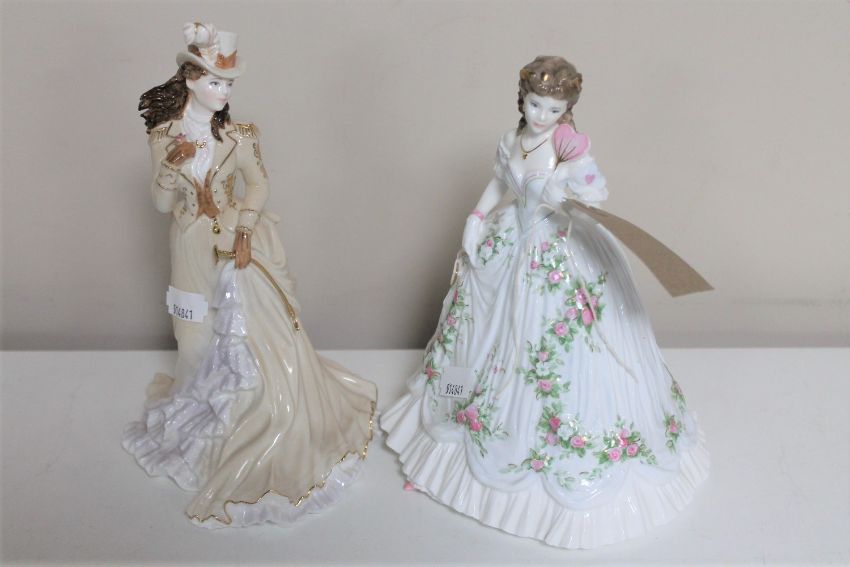 A Royal Worcester figure - Queen of Hearts number 2532 of 12500 and a Coalport figure - La Belle Epoque Helena Riding in Hyde Park