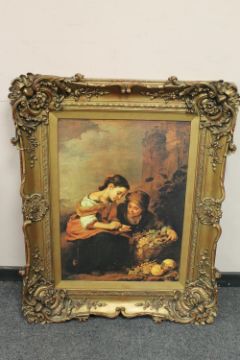 An ornately framed picture depicting two young girls, 83 cm x 101 cm