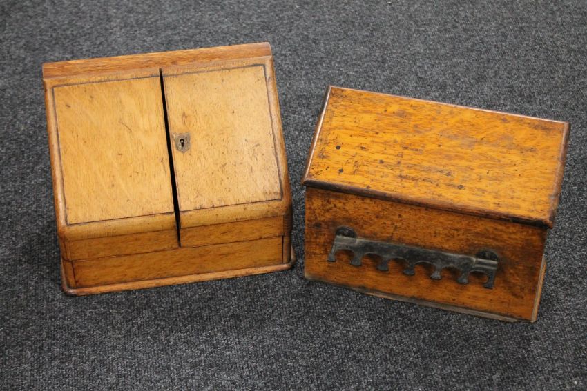 An Edwardian oak correspondence box together with another Edwardian oak box