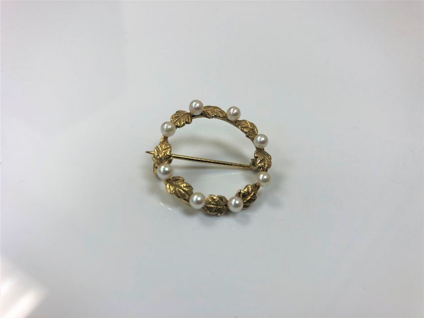 A 9ct gold pearl set brooch, 3.6g.
