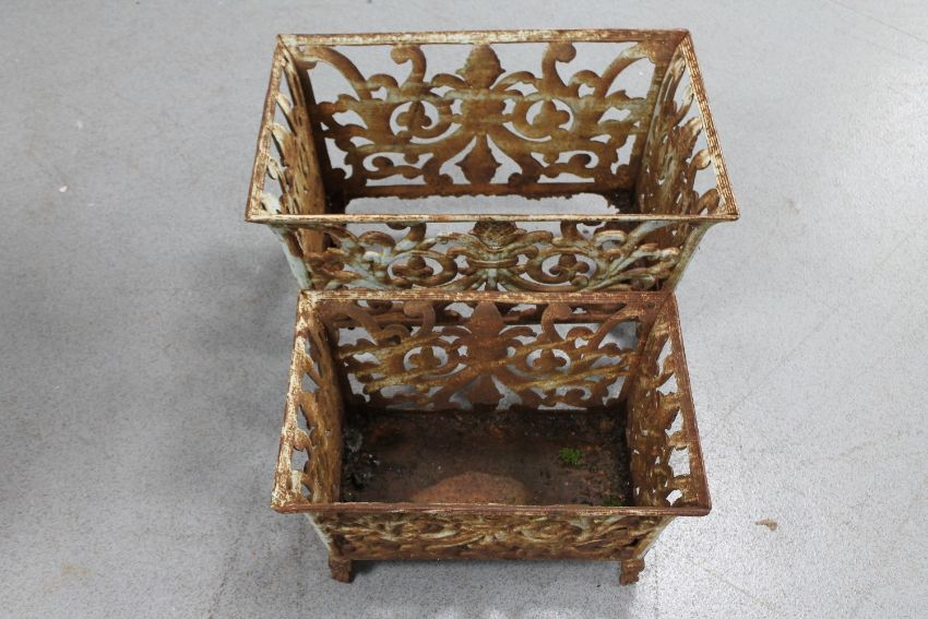 Two graduated cast iron garden planters