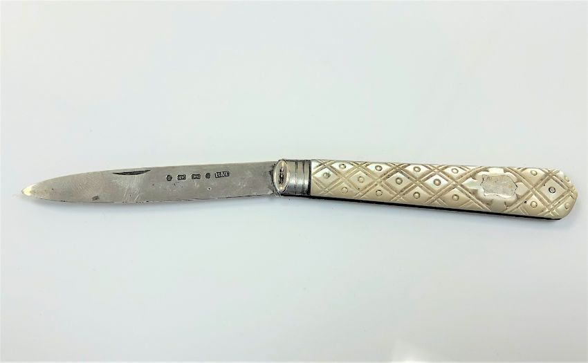 A Victorian silver and mother of pearl fruit knife, Birmingham 1867