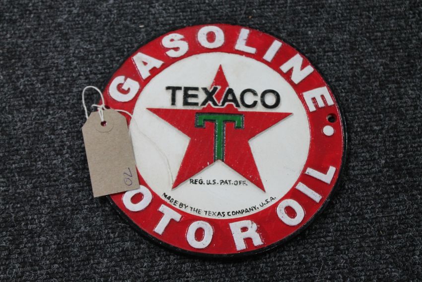 A cast iron Texaco motor oil plaque