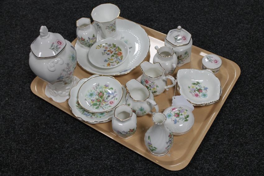 A tray of eighteen pieces of Aynsley Cottage Garden and Wild Tudor china
