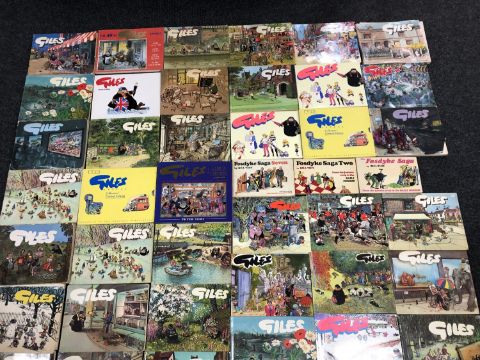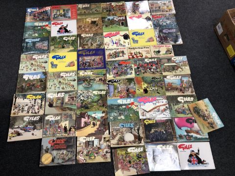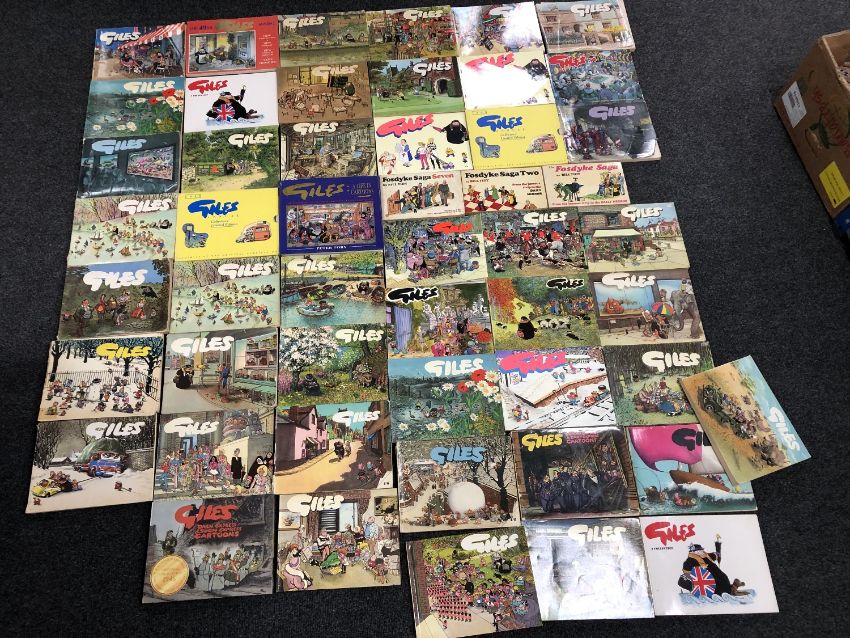 A box of approximately forty-seven Giles cartoon books together with three Fosdyke Saga books