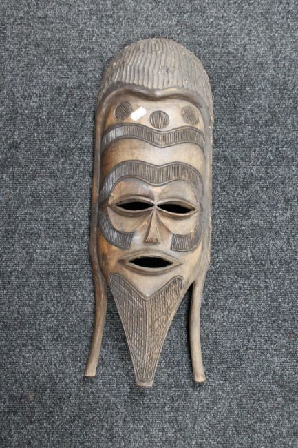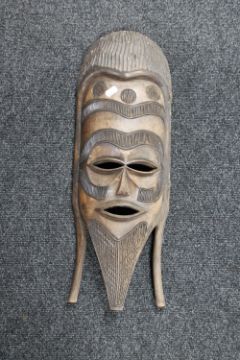 A carved hardwood tribal mask