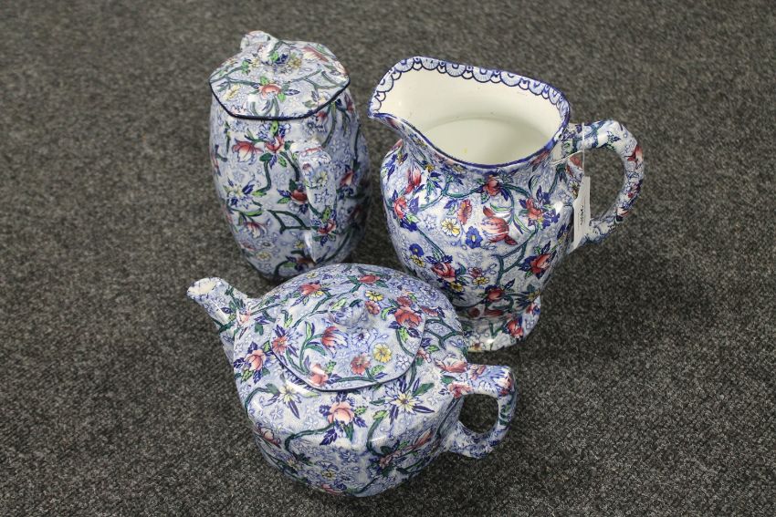 A Ringtons Maling chintz teapot and coffee pot with matching jug