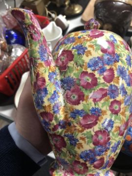 Teapot with minor surface wear to gilding. Small patch on spout where design has not transferred properly. See images.