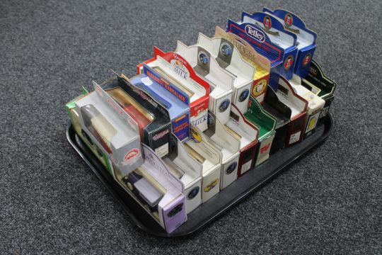 A tray of thirty boxed die cast vehicles including Lledo, Days Gone By and Models of Yesteryear, Oxford etc