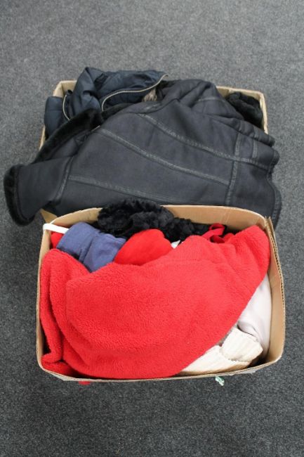 Two boxes containing assorted lady's clothing and jackets