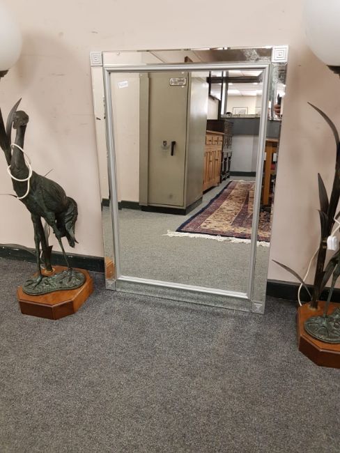 A contemporary glass framed mirror, 74 cm x 105 cm