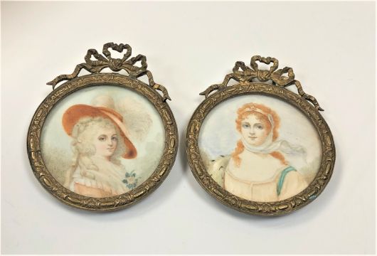 A pair of early 19th century portrait miniatures on ivory, diameter 4.7cm