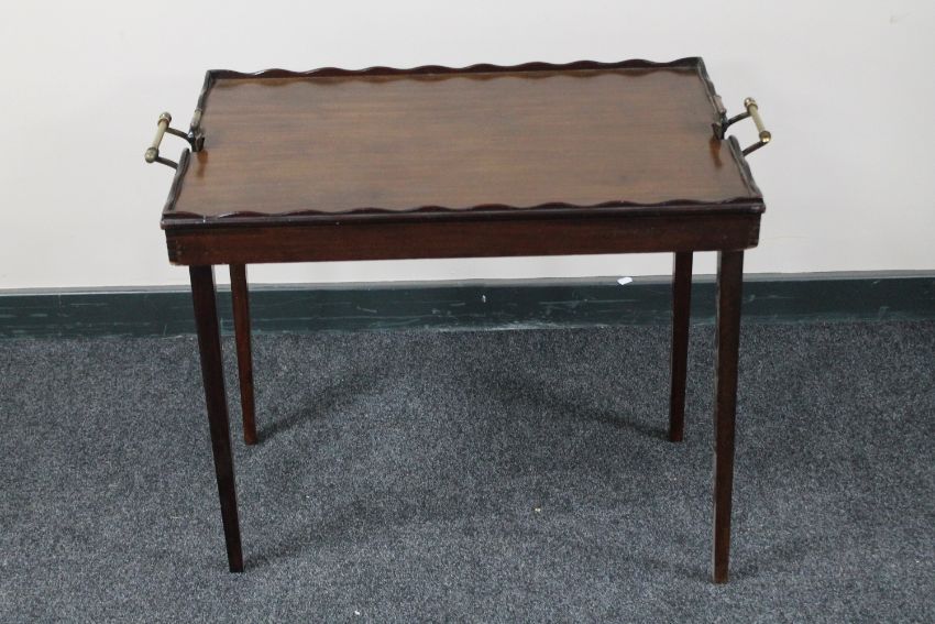 An Edwardian mahogany folding tray table