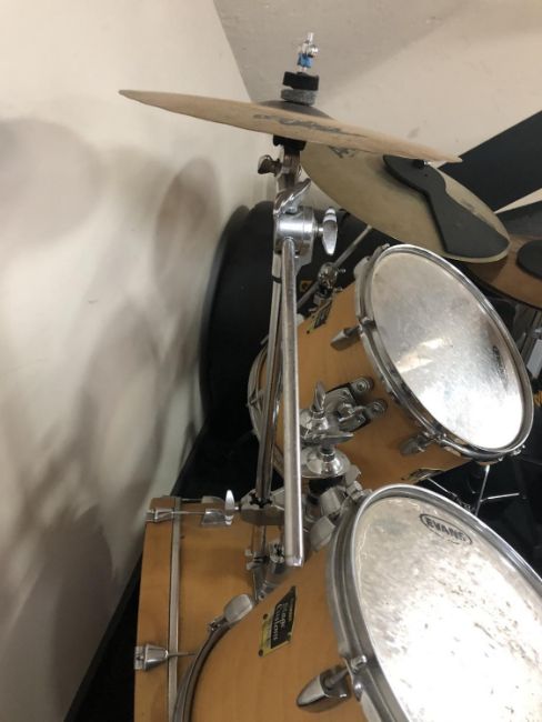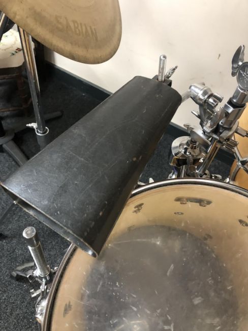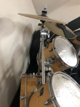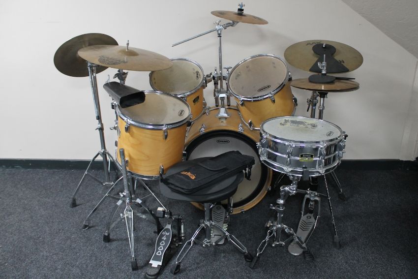 A Yamaha stage custom drum kit with Evans Genera G" drum skins, Sabian cymbals and five drum and cymbal hard cases