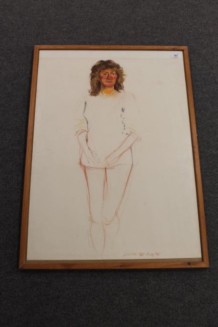 Donald James White : Sandie in Edinburgh, colour chalks, signed with initials, dated Aug '85, 84 cm x 60 cm, framed.