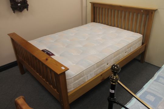 A pine framed 4'6 bed with Exclusive Range mattress