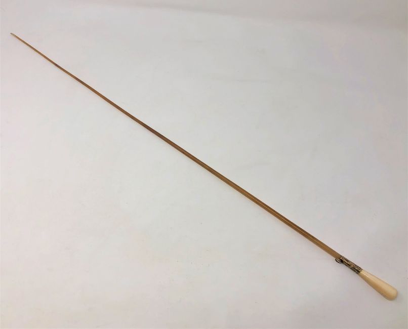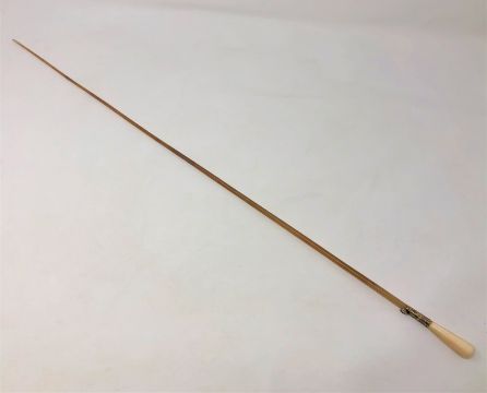 A late Victorian ivory and rhinoceros horn conductor's baton, with yellow metal ferrule, length 63cm