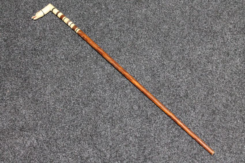 An antique ivory handled walking cane