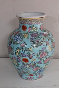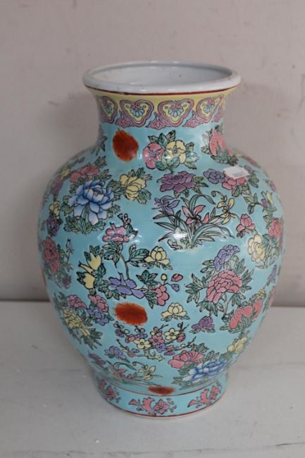 A 20th century Chinese pottery vase, decorated with flowers, character marks to base