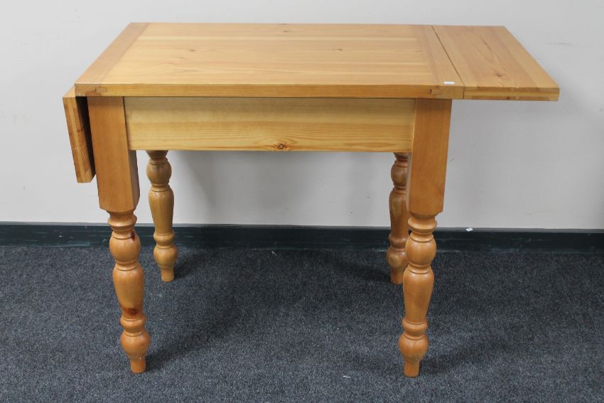 A pine farmhouse table with folding top