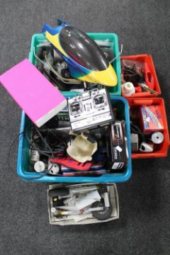 A large collection of radio control model kits, parts and accessories : Raptor Series helicopter, aircraft, wheels, remote control, boxed parts etc