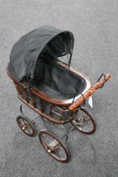A wooden framed doll's pram