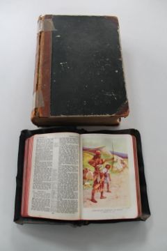 An antique Holy bible and a leather bound German dictionary