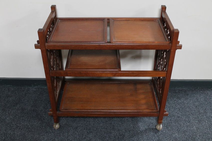 An early 20th century mahogany trolley with lift out trays (Originally purchased from the Ideal Home Exhibition Olympia)