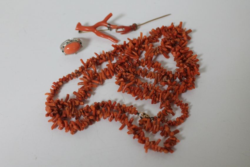 A collection of coral jewellery