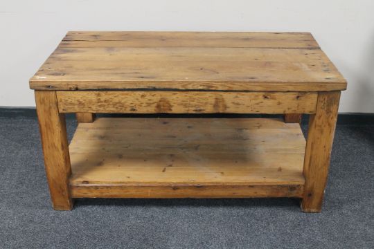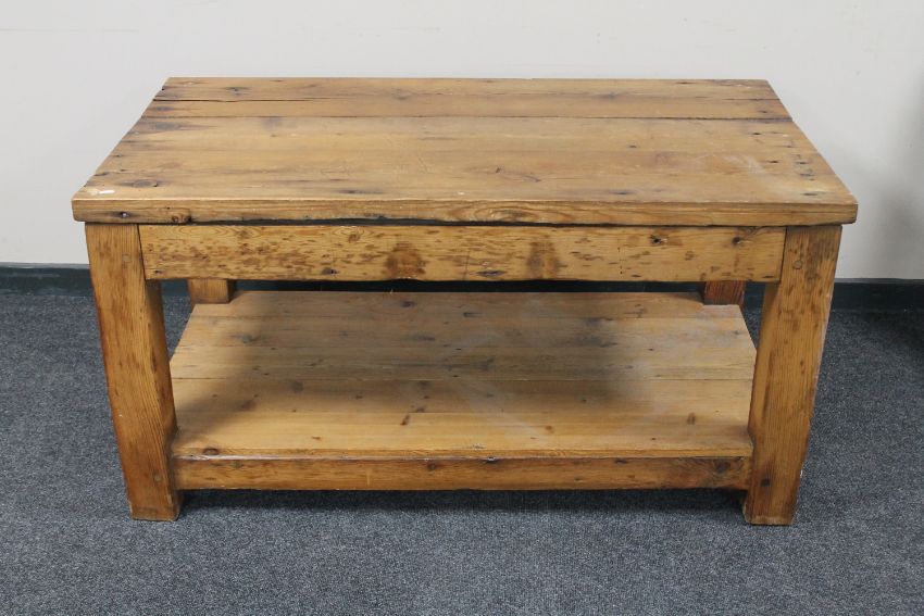 A rustic pine two tier preparation table