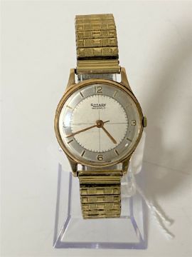A gent's 9ct gold wristwatch signed Rotary Maximus, on plated expanding strap