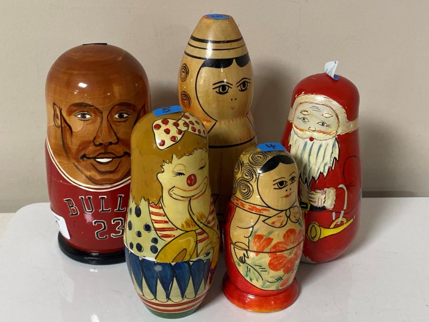 A group of five Russian dolls
